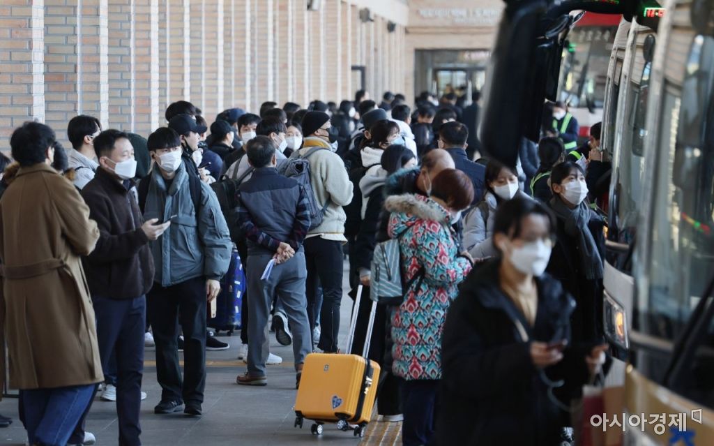 설 연휴를 하루 앞둔 20일 서울 서초구 고속버스터미널에서 귀성객들이 고향가는 버스에 오르고 있다. 사진=윤동주 기자 doso7@