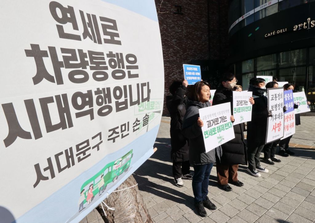 일각에선 우려의 목소리가 나왔다. 서울환경연합을 비롯해 10개 단체로 구성된 '연세로 공동행동'은 이날 오전 11시30분 대중교통전용지구 운영 일시정지 규탄 릴레이 1인시위와 현수막 행동에 나서기도 했다. 보행자 친화 의도가 퇴색되고, 교통체증으로 인한 대기 오염 등 환경 문제도 고려해야 한다는 것이 이들의 입장이다.