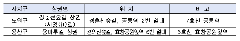 이번에 선정된 골목상권은 경춘선숲길(노원구), 용마루길(용산구) 총 2곳이다.