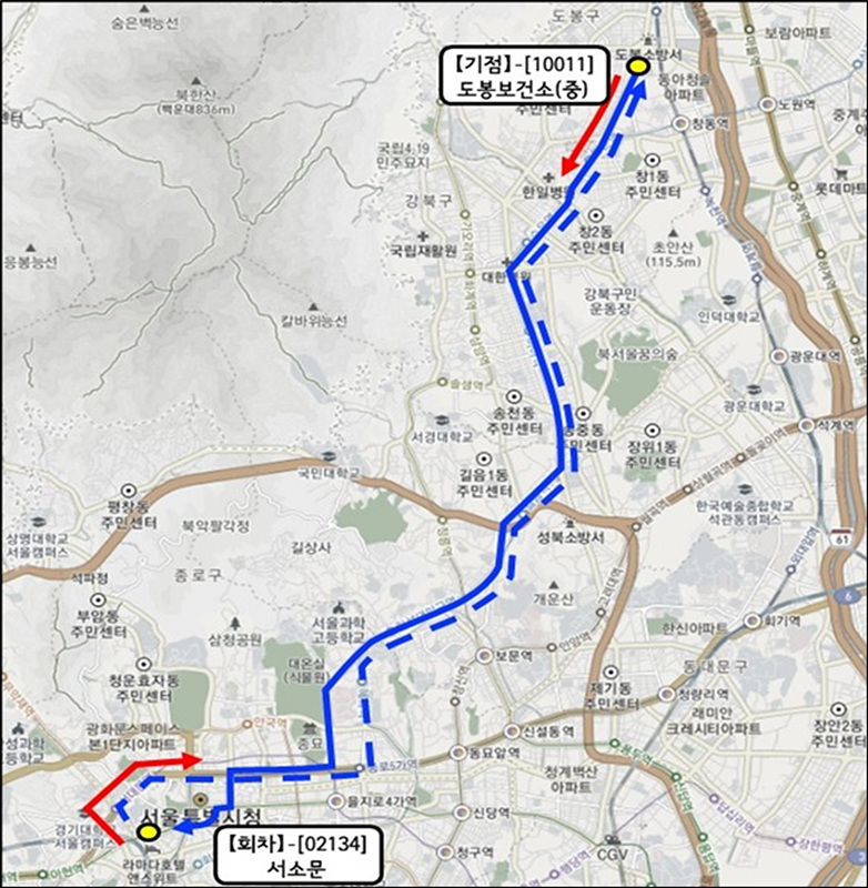 2월1일부터 평일 하루 총 6회(오전 7시 30분~8시 5분) 도봉보건소(중앙차로) 버스 정류소에서 출발하여 서소문까지 운행될 예정이다.