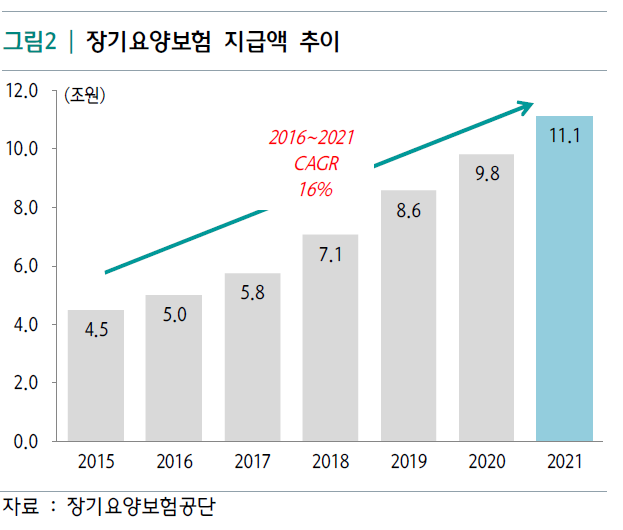 정 연구원은 "일본도 초기에는 영세사업자 난립, 대규모 부당 청구 등의 부작용이 있었지만 이후 제도 개선을 통해 민간 사업자의 참여를 유도하면서 질적으로 성장했다"라며 "특히 민영 간병보험을 제공하고 있어 다른 업종 대비 시너지 창출이 용이한 보험업계가 기존의 부실한 요양회사 인수합병(M&A)하는 식으로 시장에 진출했다"라고 설명했다.