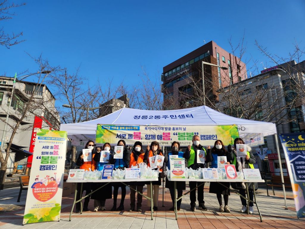 이번 ‘봄봄 캠페인’은 정릉교통광정에서 열렸다. 주변 상가 상인들과 주민들에게 위기가정 발굴 및 지원을 위한 신속한 신고를 당부했으며 복지플래너의 다양한 복지지원제도 상담도 함께 진행했다.