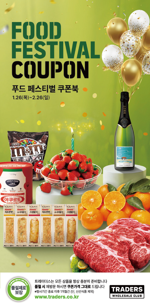 트레이더스 홀세일 클럽은 오는 26일부터 2월 26일까지 한 달 동안 신선·가공식품 분야 인기 상품을 할인 판매하는 ‘푸드 페스티벌’ 행사를 선보인다고 24일 밝혔다.