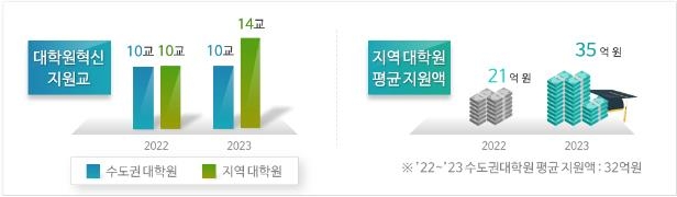 교육부 계획에 따르면 대학원혁신사업 지원 대상은 수도권 대학원 10곳, 지역(비수도권) 대학원 14곳이며, 평균 지원액도 수도권은 학교당 32억원, 지역은 35억원으로 지역이 더 많다.