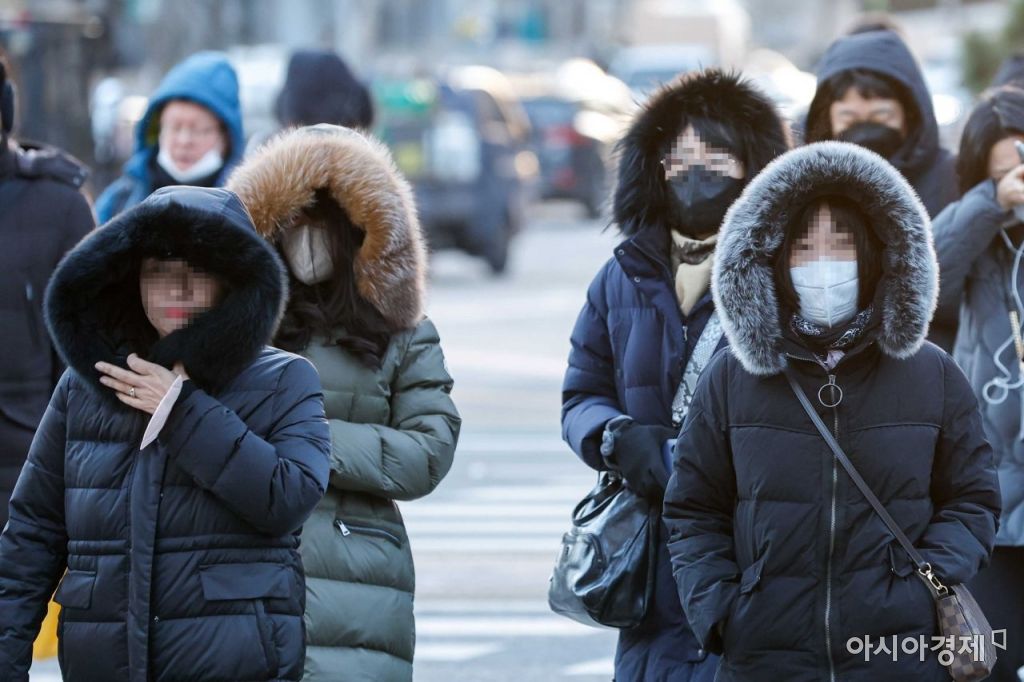 서울 아침 최저 기온이 영하 8도까지 떨어진 14일 서울 마포구 공덕오거리에서 시민들이 두꺼운 외투를 입고 이동하고 있다./강진형 기자aymsdream@