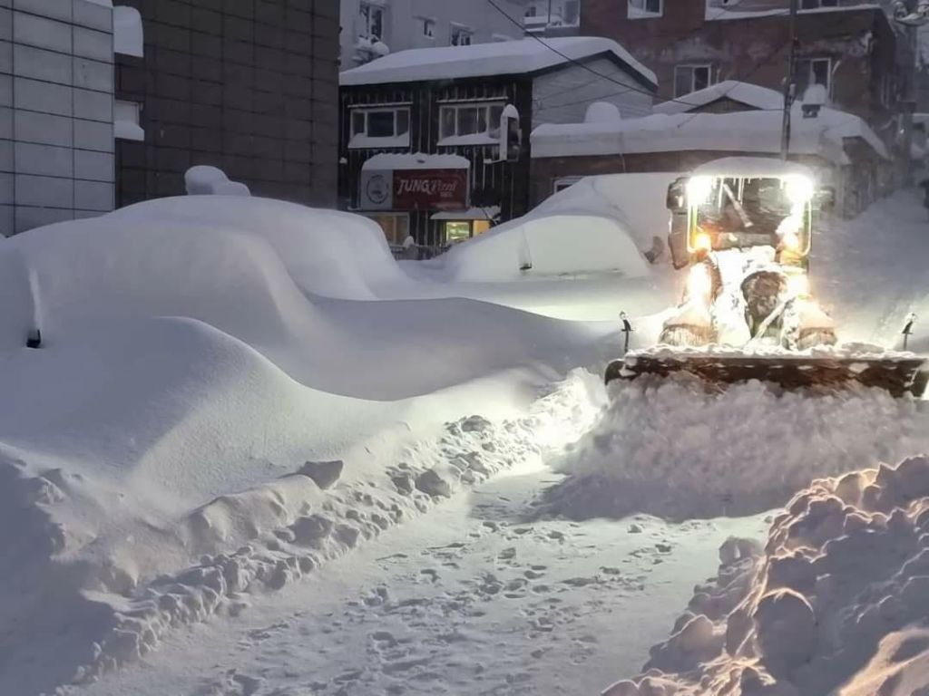 사흘간 큰 적설량을 기록한 울릉군에서 제설작업이 진행되고 있다.