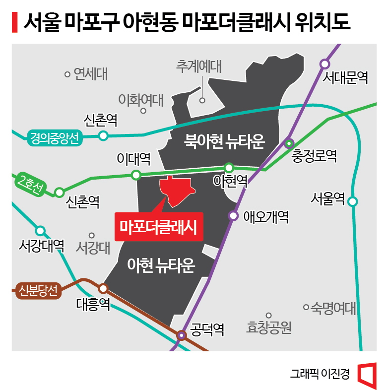 26일 국토교통부 청약홈에 따르면 오는 30일 서울 마포구 아현동 마포더클래시 27가구에 대한 무순위 청약이 진행된다. 이 아파트는 아현2구역을 재개발한 1419가구 대단지로 지난해 12월 일반청약을 실시한 바 있다. 당시 53가구 모집에 1028개 통장이 접수되며 평균 경쟁률 19.4대 1을 기록했다. 고금리로 청약 시장에 한파가 몰아치는 가운데 뛰어난 입지를 무기로 양호한 성적을 거뒀다는 평가를 받았다. 마포더클래시는 지하철 2호선 아현역과 이대역 사이에 입지해 여의도, 광화문 등 주요 업무지구에 대한 직주근접성이 우수한 것이 장점이다.