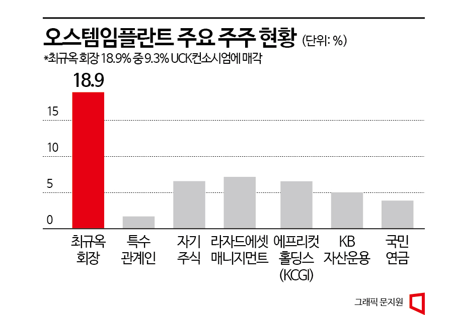공개매수 신고서에 따르면 UCK컨소시엄은 특수목적법인(SPC) 덴티스트리인베스트먼트를 만들어 오스템임플란트 창업주인 최규옥 회장이 보유한 지분 18.9% 중 9.3%(144만2421주)를 약 2740억원에 사들인다. 주당 19만원이다. UCK컨소시엄은 최 회장이 보유한 오스템임플란트의 종속회사 지분을 918억원에 인수하고, 최 회장의 특수관계인이 보유한 지분도 46억원에 인수한다고 공개매수 신고서에 밝혔다. 전체 인수 규모는 3706억원에 이른다.
