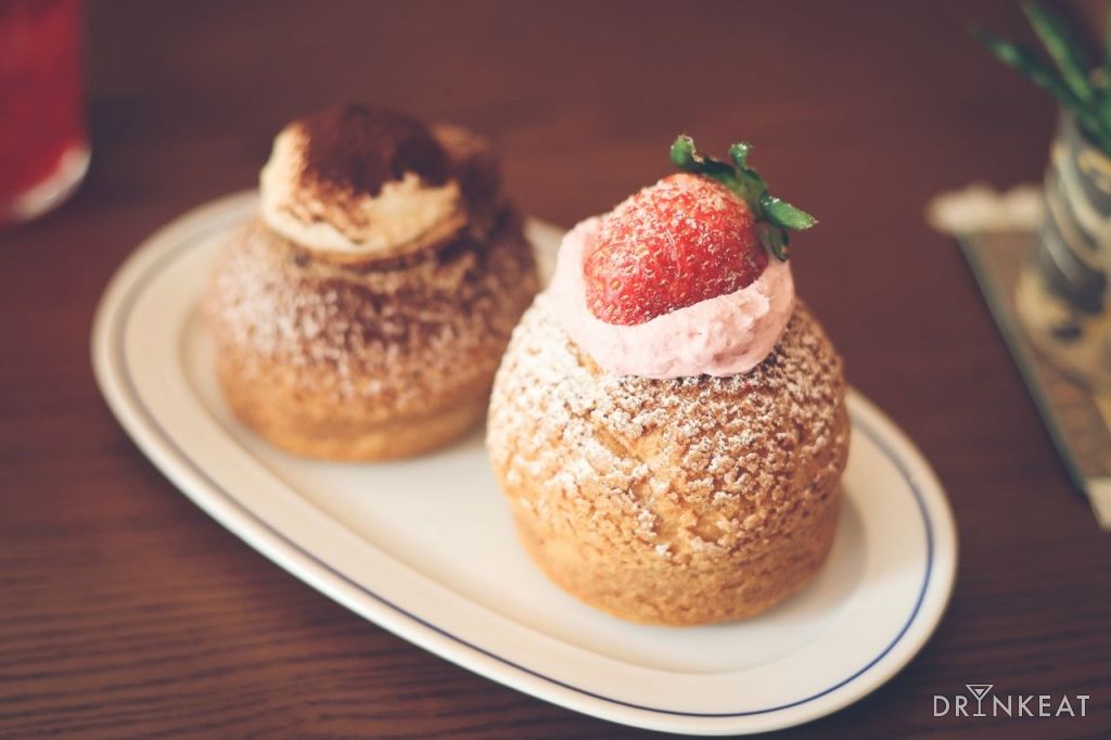 상큼한 유자애플티, 고소한 아이스 라떼를 주문했어. 붉은빛의 유자애플티에는 젤리처럼 씹을 수 있는 작은 알맹이가 있어! 디저트는 딸기 쿠키슈, 티라미슈 쿠키슈를 택했어. 반을 가르니 저렇게 딸기 크림이 듬뿍 들어있는데, 정말 부드럽고 상큼해. 부드러운 쿠키슈와 제철 딸기는 환상적인 궁합을 자랑했어. 한마디로 후레쉬베리를 떠올리게 하는 맛. 커피를 주문할 걸 살짝 후회가 됐어.