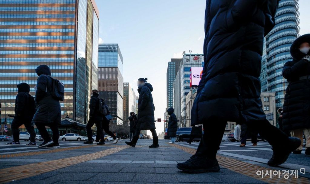 서울 종로구 세종로 네거리에서 행인들이 두꺼운 외투를 입고 있다. 사진=강진형 기자aymsdream@