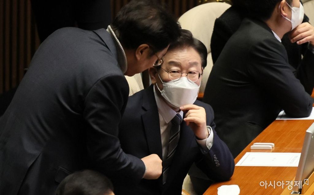 이재명 더불어민주당 대표가 30일 국회에서 열린 본회의에서 우원식 의원과 이야기를 나누고 있다. 사진=윤동주 기자 doso7@