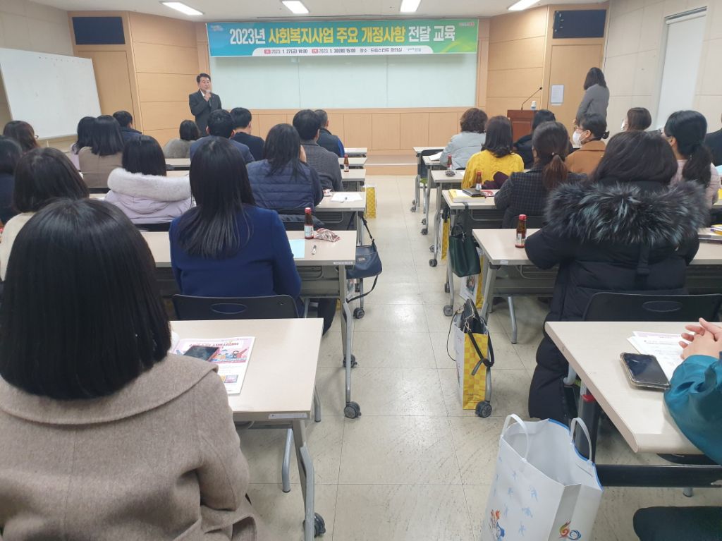포항시가 ‘2023년 사회복지사업 주요 개정 사항 전달 교육과 업무연찬’을 하고 있다.