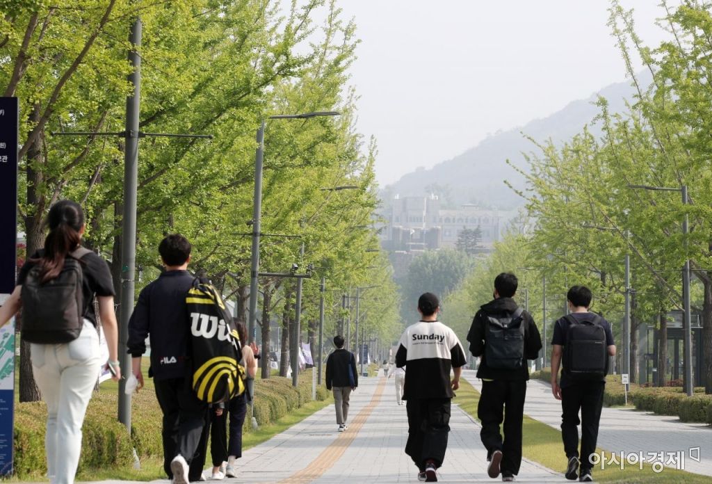 23일 서울 서대문구 연세대학교에서 학생들이 5월의 푸른 캠퍼스를 걷고 있다. 기상청은 이날 전국이 대체로 맑은 가운데 최고 체감온도가 31도 이상으로 오르는 등 여름 날씨를 보일 것으로 예보했다. 미세먼지는 전국 대부분 권역에서 '보통' 수준을 보이겠다./김현민 기자 kimhyun81@