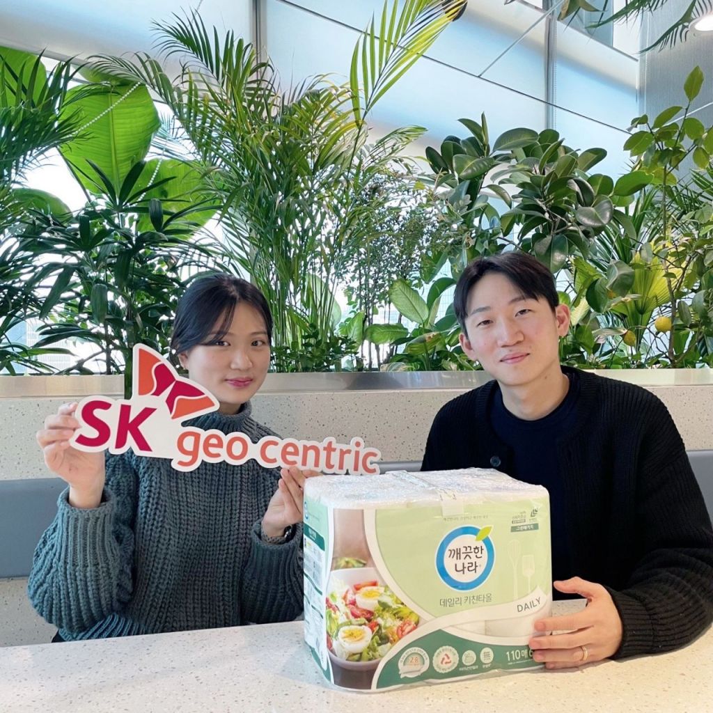 GRS인증을 받은 재활용 재생원료를 활용한 포장재가 적용된 ‘데일리 키친타올’ 제품 [사진제공=SK지오센트릭]