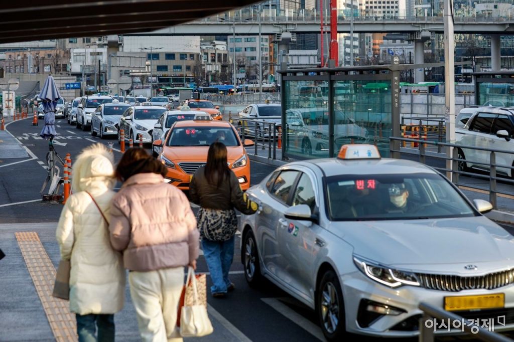 서울 중형택시 기본요금이 내일 오전 4시부터 현재의 3800원에서 4800원으로 1000원 인상을 앞두고 있는 31일 서울역 택시승강장에서 시민들이 택시를 이용하고 있다. 사진=강진형 기자aymsdream@