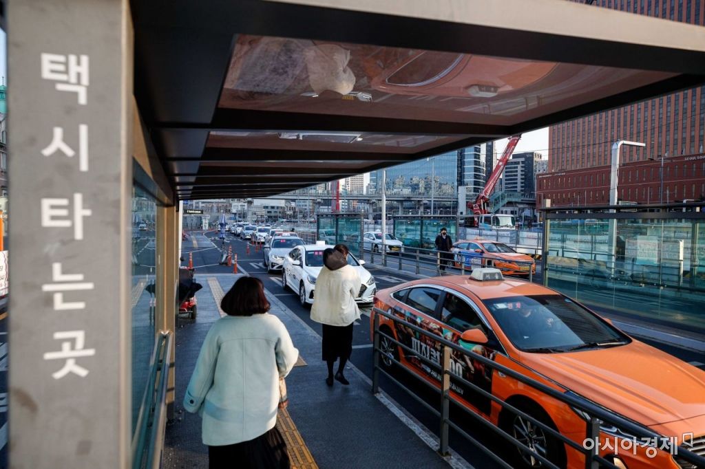 서울 중형택시 기본요금이 내일 오전 4시부터 현재의 3800원에서 4800원으로 1000원 인상을 앞두고 있는 31일 서울역 택시승강장에서 시민들이 택시를 이용하고 있다. 사진=강진형 기자aymsdream@