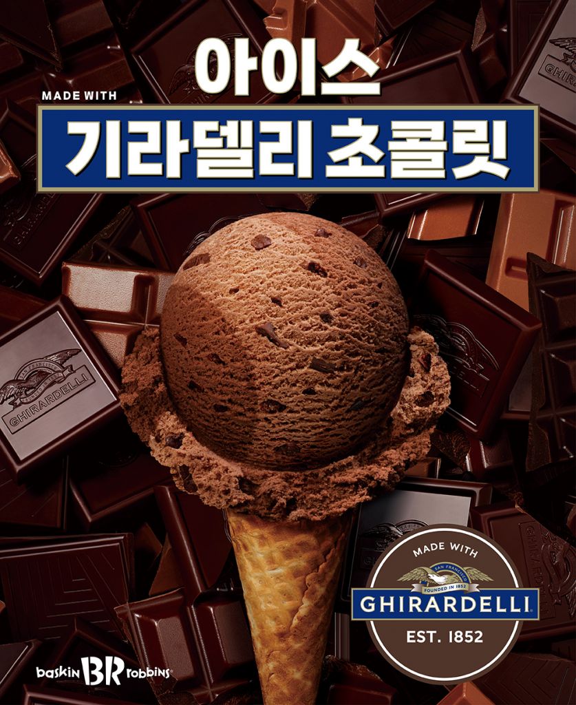 SPC그룹의 배스킨라빈스는 초콜릿 브랜드 기라델리와 협업해 2월 이달의 맛 ‘아이스 기라델리 초콜릿’을 출시한다고 31일 밝혔다.