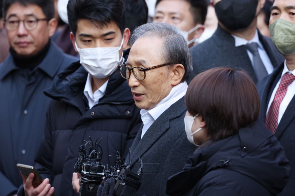 윤석열 대통령의 신년 특별사면으로 사면·복권된 이명박 전 대통령이 지난해 12월30일 오후 서울 강남구 논현동 자택에 도착해 대국민 메시지를 발표하고 있다. [이미지출처=연합뉴스]