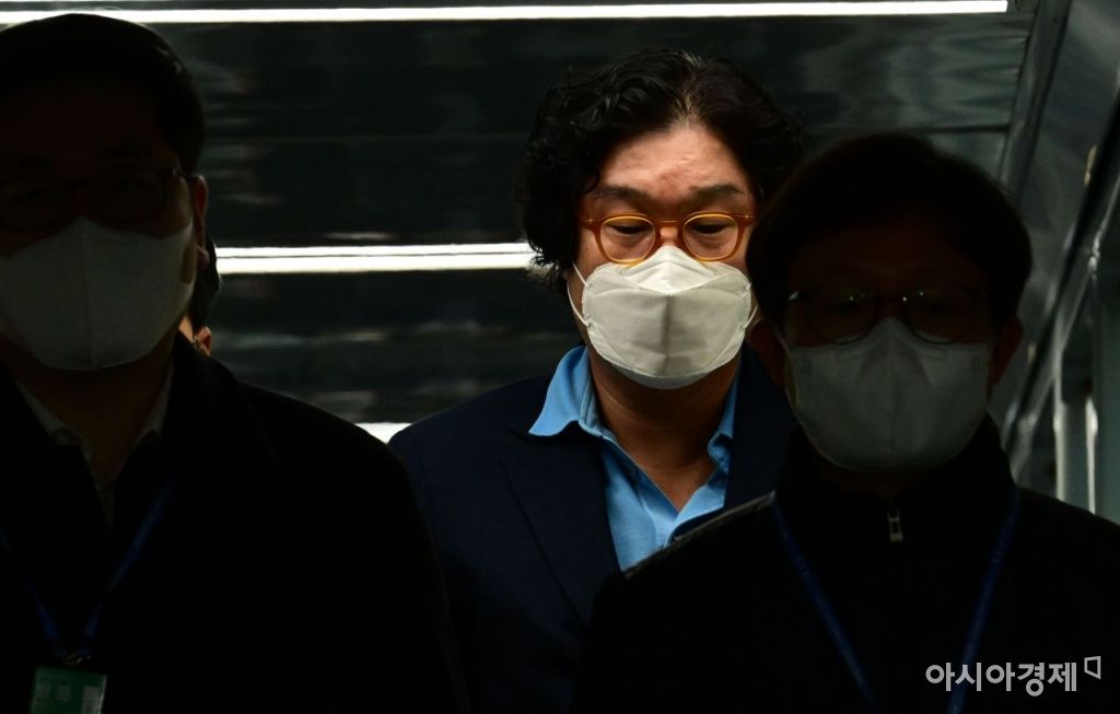 해외 도피생활 중 태국에서 체포된 쌍방울 그룹의 실소유주 김성태 전 회장이 17일 오전 인천국제공항을 통해 압송되고 있다. 사진=강진형 기자aymsdream@