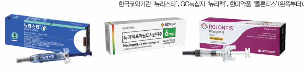 항암제 시장 내에서 제조사와 공급사 간의 이합집산 사례는 파클리탁셀뿐만은 아니다. 약 900억 규모의 국내 호중구감소증 치료제에서도 지난해 비슷한 상황이 벌어진 바 있다. 호중구는 백혈구 내에서 박테리아 및 진균 감염을 방어하는 역할을 하지만 암 환자는 항암치료 과정에서 호중구가 줄어드는 호중구감소증이 빈번히 나타난다. 이를 막기 위해서는 항암 치료 주기에 맞춰 주기적으로 치료제 주사를 맞아야 한다.