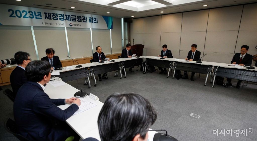 추경호 경제부총리 겸 기획재정부 장관이 1일 서울 서초구 aT센터에서 열린 '2023년 재정경제금융관 회의'에 참석해 모두발언 하고 있다. 사진=강진형 기자aymsdream@