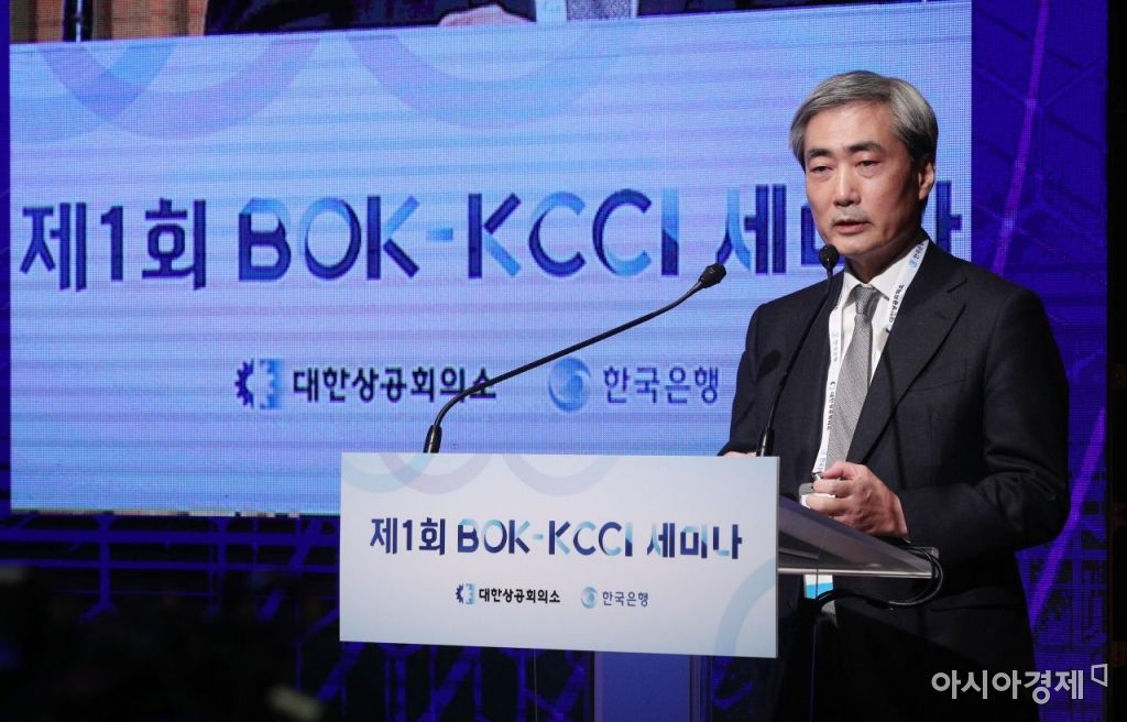 신현송 BIS 경제보좌관 겸 조사국장이 1일 서울 중구 대한상공회의소에서 '경제 패러다임의 변화와 한국경제의 대응 방안'을 주제로 열린 제1회 한국은행-대한상의 공동세미나에서 기조강연을 하고 있다. 사진=김현민 기자 kimhyun81@