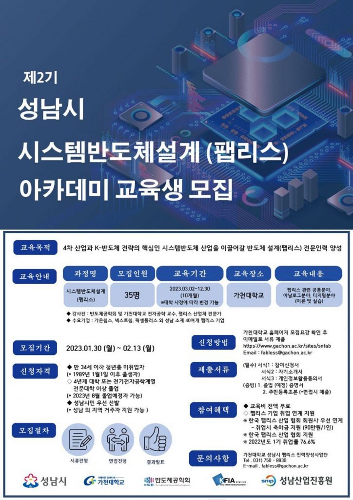 성남시의 시스템반도체 설계 아카데미 교육생 모집 공고