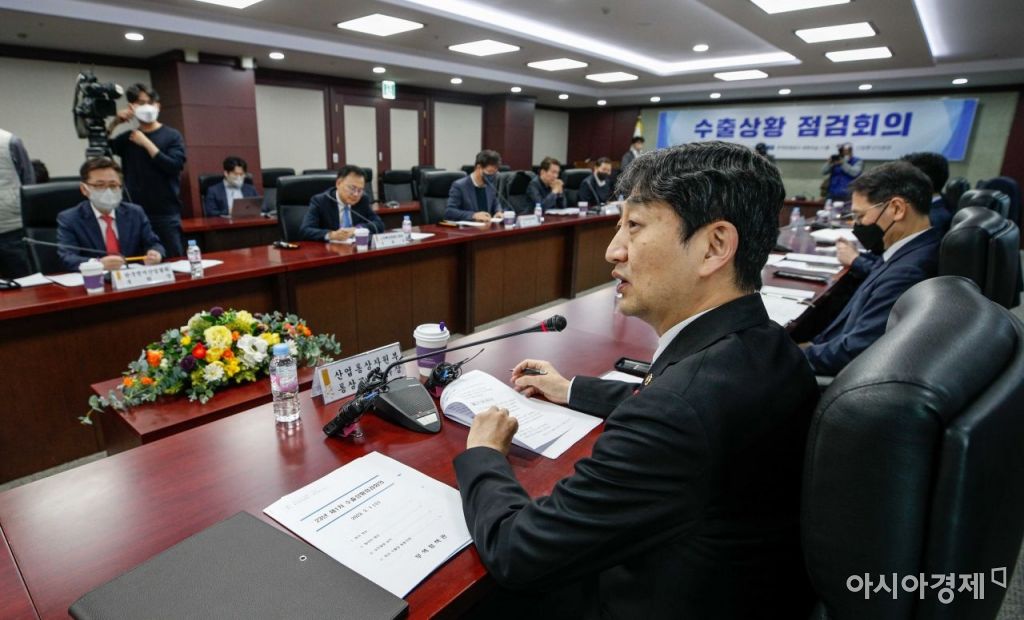 안덕근 산업통상자원부 통상교섭본부장이 1일 서울 종로구 무역보험공사에서 열린 '수출상황 점검회의'에 참석해 모두발언 하고 있다. 사진=강진형 기자aymsdream@