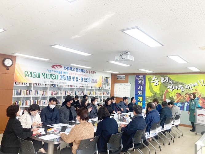 김진순 사회복지과장은 “우리 동네 복지기동대를 통해 우리 주변의 어려운 이웃을 보살피고 일상생활에서 작은 도움을 주는 매개체 역할을 톡톡히 할 것이다”며 “복지 사각지대 제로를 위해 최선을 다하겠다”고 밝혔다.