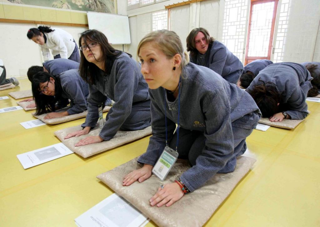 템플스테이에서 절 배우는 외국인 [이미지출처=연합뉴스]