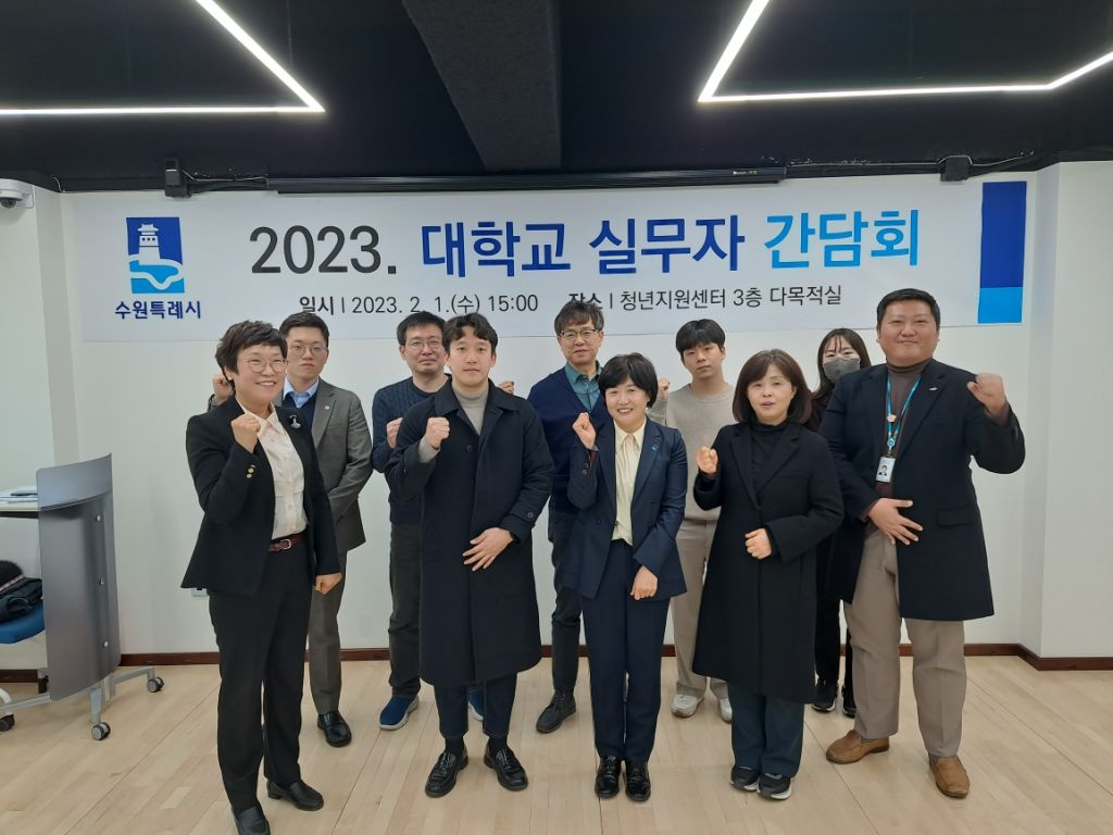 수원시는 1일 청년지원센터에서 '2023 대학교 실무자 간담회'를 열고, 오는 4월 중 경기대학교, 동남보건대학교, 성균관대학교, 수원여자대학교, 아주대학교 등 관내 5개 대학이 참여하는 '대학교협의체'(가칭)를 구성하기로 했다고 2일 밝혔다.