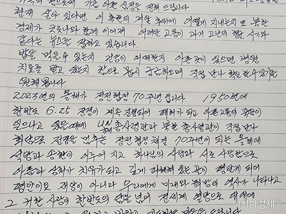 이어 "살아 있다면 이 혹한의 겨울 추위에 어떻게 지내는지, 북한경제가 코로나와 함께 이어져 어려운 고통이 과거 고난의 행군 시기와 같다는 뉴스를 접하고 있다"면서 동생의 안부를 물었다. 김씨는 또 "정전 협정 70주년이 되는 올해에 석방과 송환이 이뤄지길 원하고 바란다"고 강조했다.