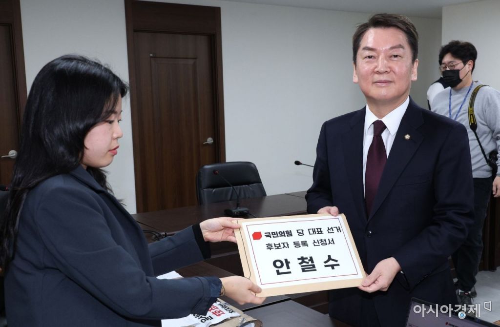 안철수 국민의힘 의원이 2일 서울 여의도 중앙당사에서 당대표 후보 등록을 하고 있다. 사진=윤동주 기자 doso7@