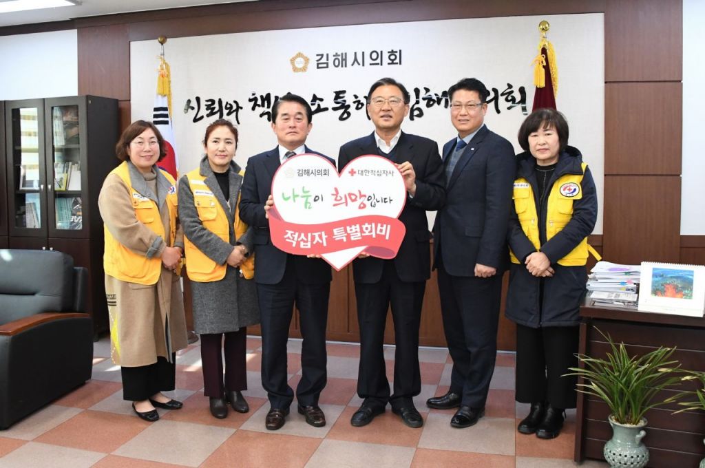 전달식에는 류명열 의장과 대한적십자사 경남지사 이병열 상임위원, 임군빈 사무처장, 적십자봉사회 김해지구협의회 김나경 회장 등이 참석했다.