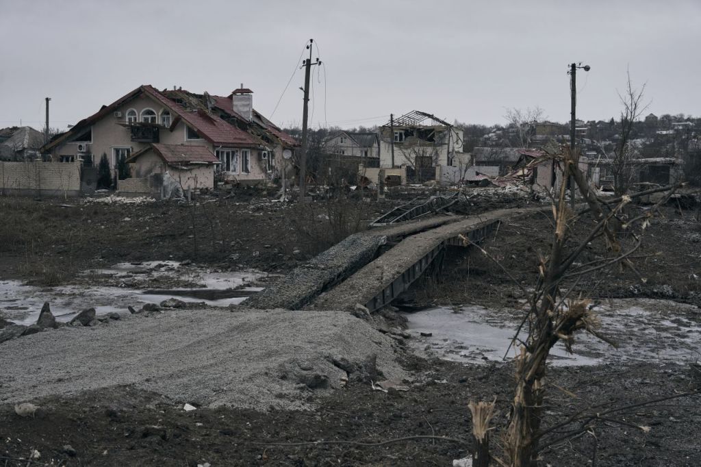 12일(현지시간) 러시아와 우크라이나 격전으로 우크라이나 동부 바흐무트의 주택가가 파괴된 모습. [사진출처=AP연합뉴스]