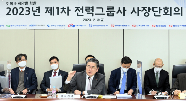 정승일 한국전력 사장이 3일 서울 서초구 한전 아트센터에서 열린 '2023년 제1차 전력그룹사 사장단 회의'에서 발언하고 있다. (사진제공=한국전력)