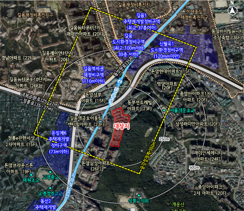 대상지는 지하철 4호선 길음역 역세권 내에 40년 이상 된 노후 저층아파트 단지가 위치한 지역이다. 단지 내 지형 단차로 인한 낮은 접근성과 커뮤니티시설 등이 없어 주거환경의 질이 떨어져 개선이 필요했다는 게 서울시의 설명이다.