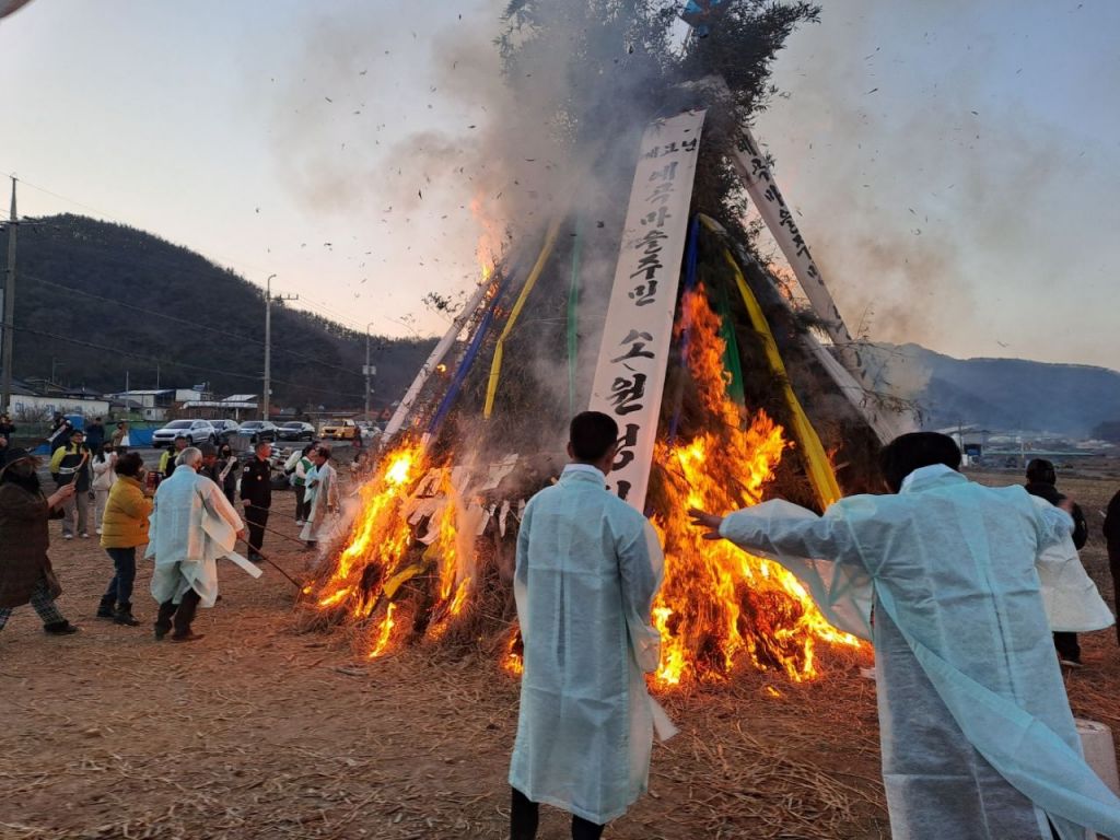 달집태우기는 음력 정월 대보름날 달이 떠오를 때 달집에 불을 붙이며 오는 세시풍속으로, 달집이 고루 한꺼번에 타야 마을이 평안하고 풍년이 든다고 전해온다.