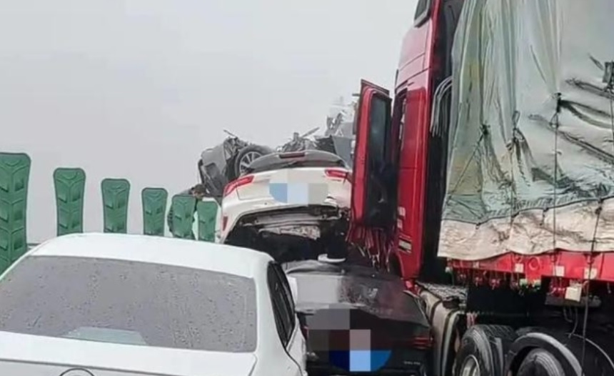 소셜미디어 웨이보에 올라온 현장 영상에는 승용차와 화물차 수십 대가 뒤엉켜있고, 일부 차량은 뒤집힌 채 다른 차량의 지붕 위에 올라가 있었다.