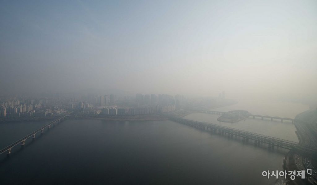 수도권에 미세먼지 비상저감조치가 시행된 6일 서울 여의도 63스퀘어 전망대에서 바라본 도심이 미세먼지에 싸여 있다. 사진=강진형 기자aymsdream@