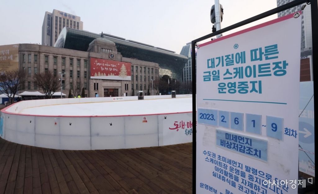 서울·인천·경기 등 수도권과 세종 지역에 고농도 미세먼지 비상저감조치가 시행된 6일 서울광장 스케이트장 운영이 중단돼 있다. 서울시는 비상저감조치가 조기 해제되면 운영을 재개할 방침이다. 사진=김현민 기자 kimhyun81@