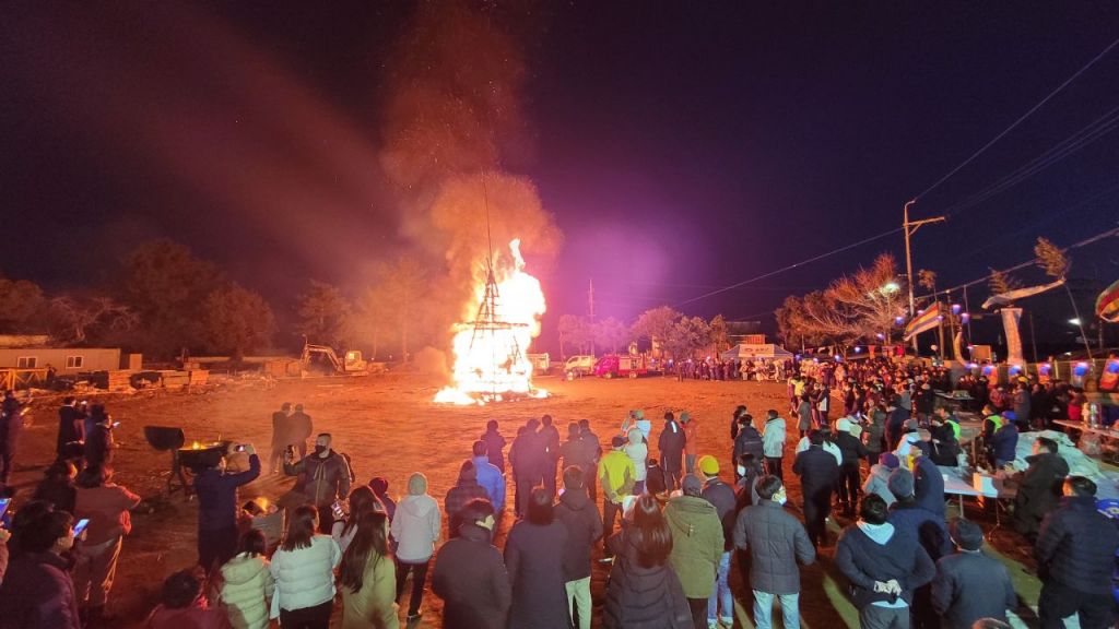 울릉예술문화체험장에서 울릉주민과 관광객이 모여 달집 태우기 행사를 하고 있다.