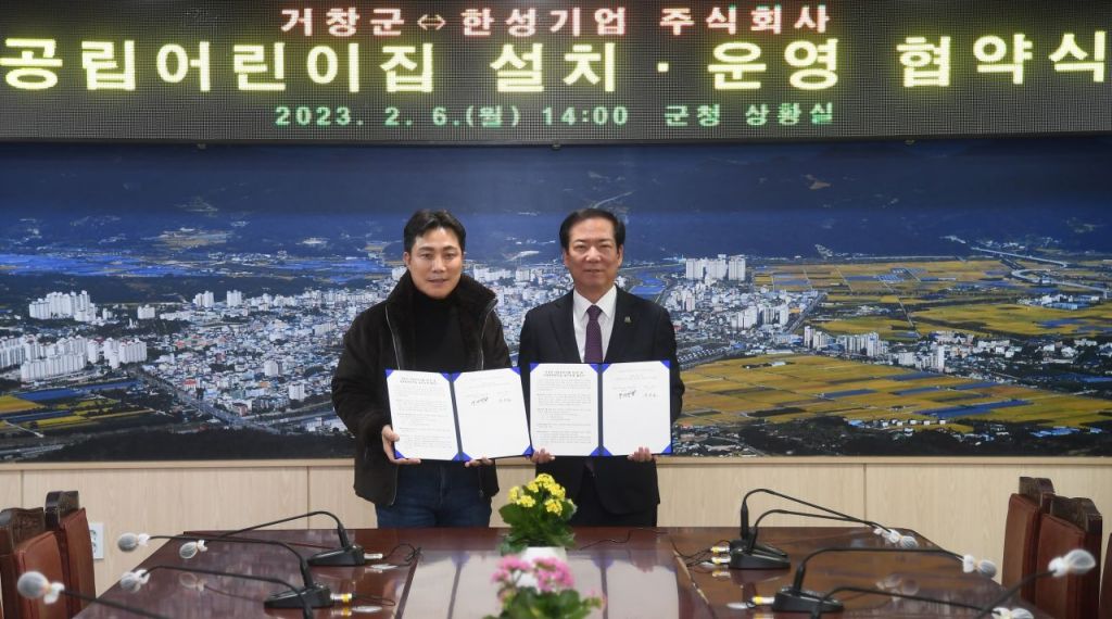 경남 거창군은 한성기업과 공동주택 단지 내 국공립어린이집 설치·운영을 위한 협약을 체결했다.