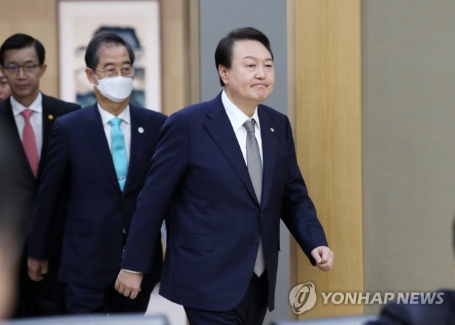 윤석열 대통령이 7일 오전 정부세종청사에서 열린 국무회의에 입장하고 있다. [사진출처=연합뉴스]