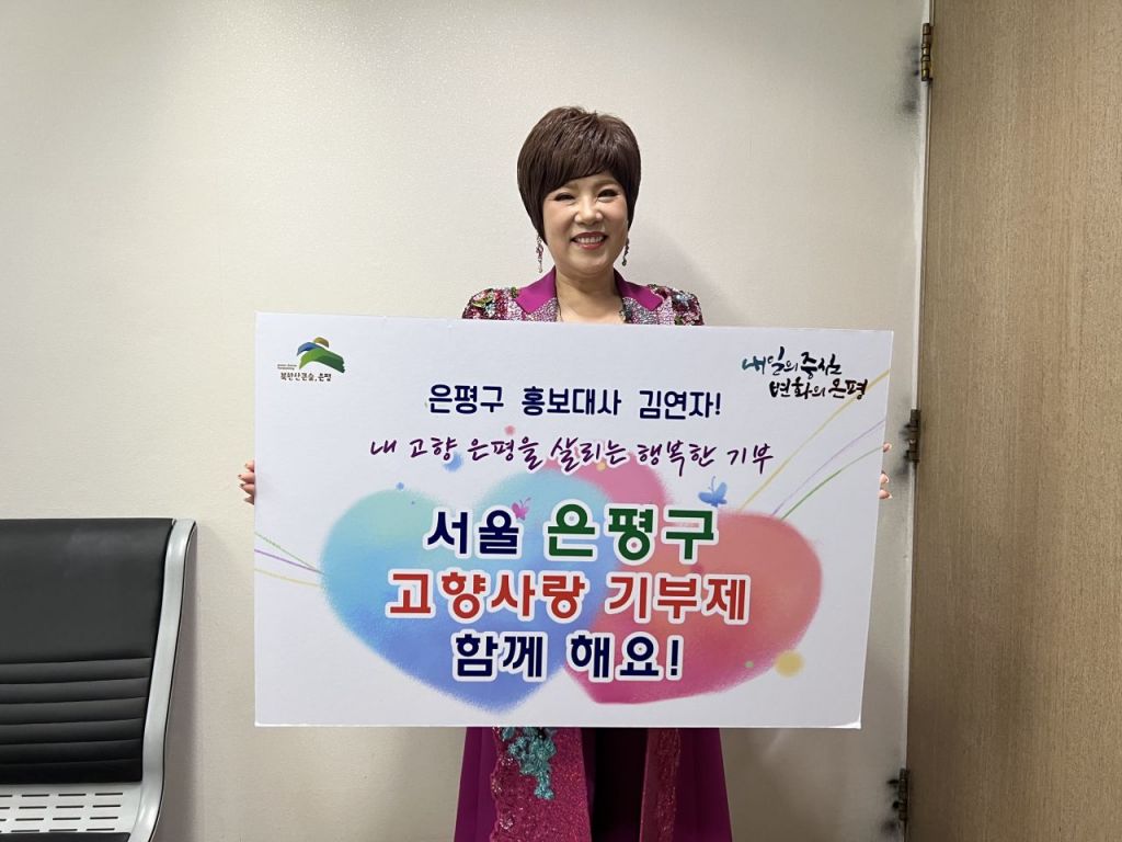 김연자는 홍보캠페인을 통해 “내 고향을 살리는 기부도 하고 답례품도 받는 고향사랑기부제, 은평과 함께 해요, 기부는 필수! 답례품은 선택!”이라며 본인의 히트곡 아모르파티를 개사하여 홍보했다.