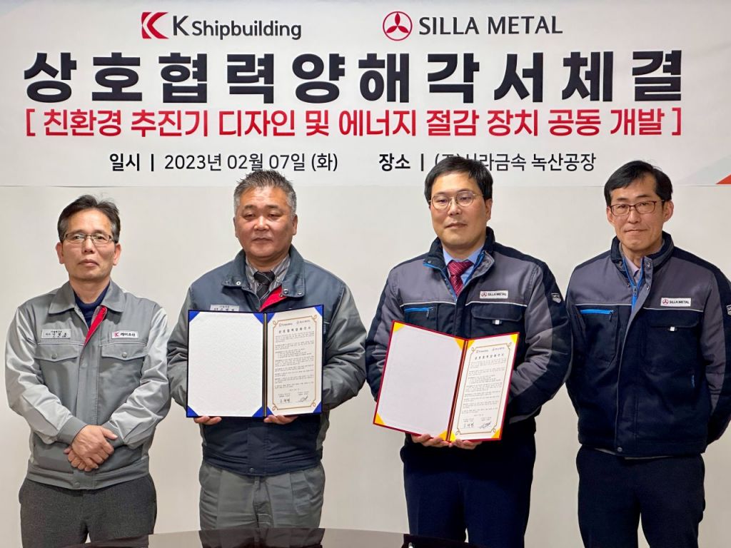신라금속 김형진 대표는 “이미 중형선박 시장에서 기술 경쟁력을 갖추고 있는 케이조선과 지난 1975년 이래 선박 추진기분야 전문 기술을 보유하고 있는 신라금속의 협력을 통해 양사 공동의 성과 창출과 함께 조선소, 기자재업체간 상생협력 체계가 구축될 수 있는 계기가 되기를 염원한다”고 말했다.