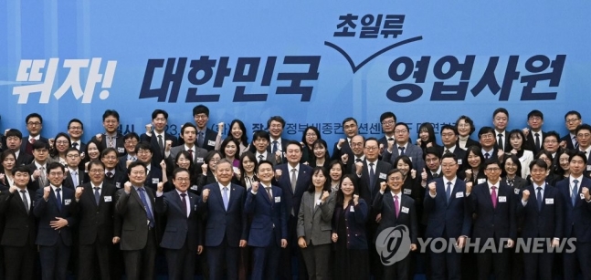[아시아경제 배경환 기자] 윤석열 대통령은 7일 세종시 공무원들과 대화의 시간을 갖고 "공직자들이 기업이라는 생각으로 정책을 펼쳐야 한다"고 밝혔다. 앞서 윤 대통령은 국무회의를 통해서도 "공직자들의 마인드가 바뀌지 않으면 경제 전쟁에서 살아남기 어렵다"며 각 부처에 일하는 방식과 생각을 전환하라고 지시했다. 수출 위주의 경제 외교를 뒷받침하기 위해서는 공직자들의 변화가 우선이라는 판단에서다.