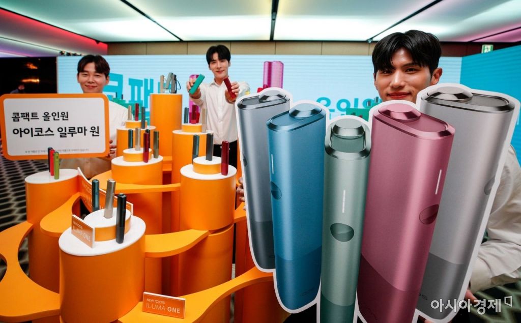 8일 서울 중구 플라자호텔에서 홍보 모델들이 차세대 궐련형 전자담배 기기 신제품 '아이코스 일루마 원'을 선보이고 있다.