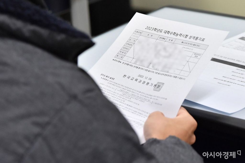 2023학년도 수능 성적표 배부일인 9일 서울 종로구 경복고등학교에서 고3 수험생이 수능 성적표를 보고 있다./김현민 기자 kimhyun81@