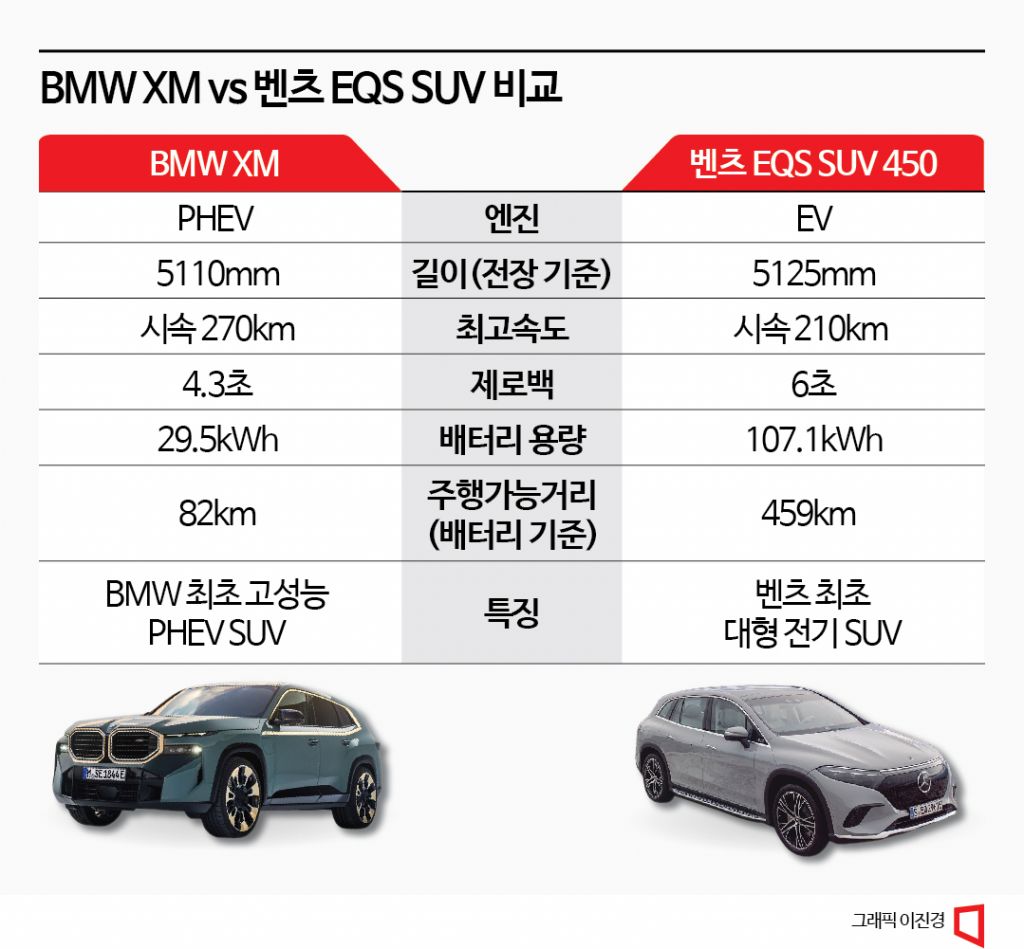 XM의 가장 큰 특징은 PHEV라는 것이다. M 트윈파워 터보 기술을 적용한 고회전 V8 가솔린 엔진과 전기모터가 함께 들어갔다. 최고출력은 653마력에 달하며 정지상태에서 시속 100㎞까지 4.3초 만에 간다. 배터리 용량은 25.7㎾h로 유럽 기준 최대 88㎞까지 전기만으로 운행할 수 있다. 전기모드의 최고속도는 시속 140㎞다. 앞뒤 길이는 5110㎜로 대형 SUV에 속한다.